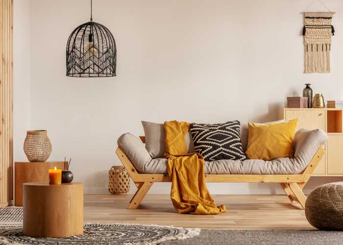 Warm, natural woods – like walnut and mahogany – and sepia tones make a room feel bright and cosy. These make a great contrast against soft coloured walls and give an illusion of fullness to minimalist design.