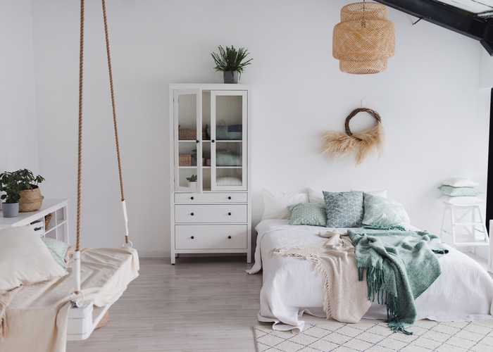 Mixed textures and layers are essential to building the perfect Scandinavian bedroom. From using contrasting hues and tones, to different textured duvet covers and bed throws, let the soft furnishings do the talking. And – the cherry on the cake – add a statement ceiling fixture or bedside lamp.