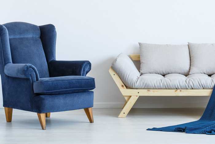 Best suited to a button back, winged armchair, navy blue velvet is an easy way to add a luxurious, yet vintage vibe to your living area. Add contrast with patterned scatter cushions or throws in a variety of textures.